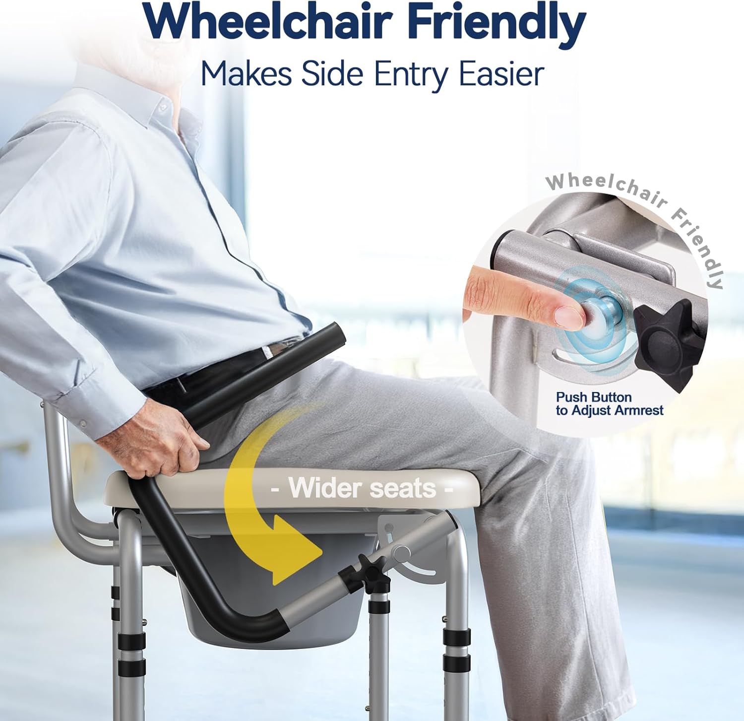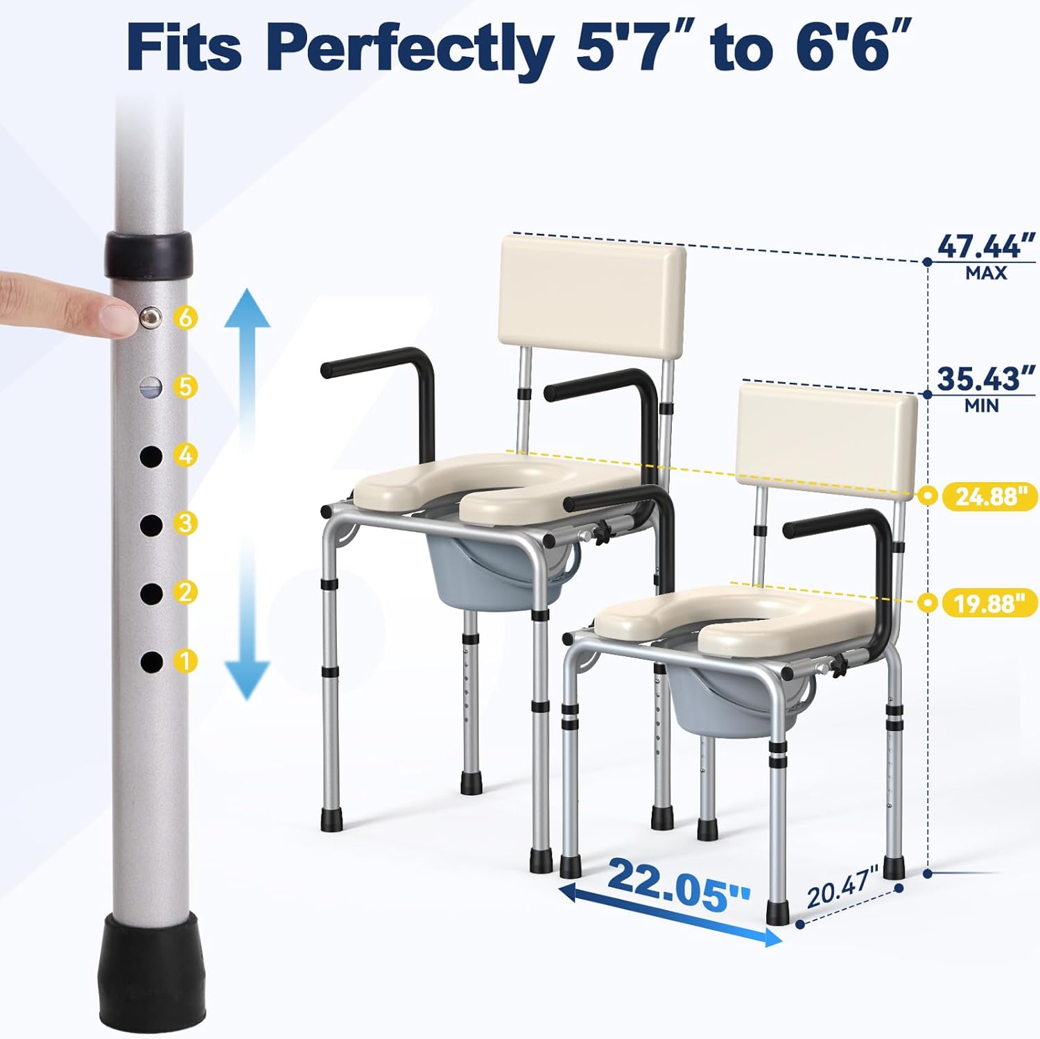 Drop Arm Bedside Commode, Commode Toilet with Padded Seat and Backrest, 400lbs Capacity, 5.3QT Removable Bucket and Splash Guard, Adjustable Height Portable Toilet for Adults, Beige