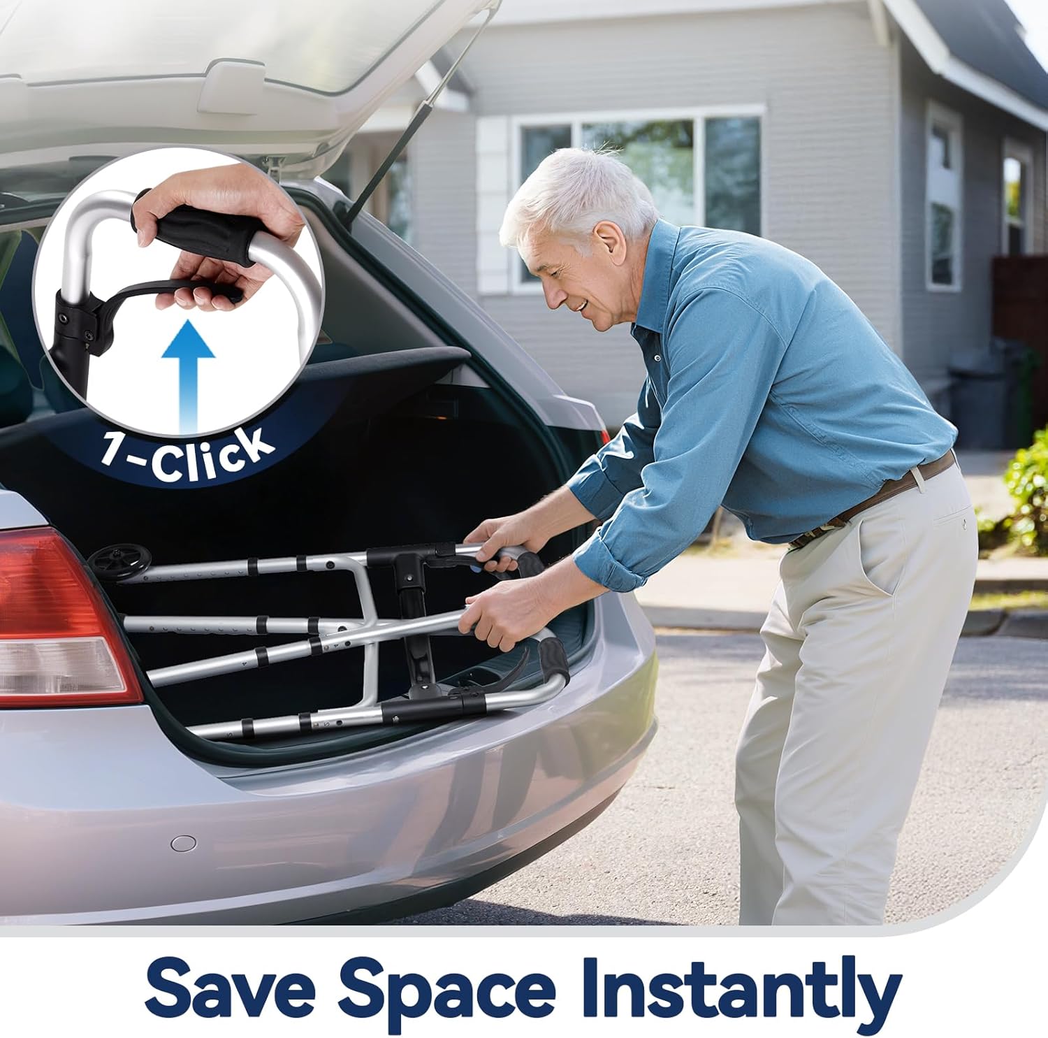 Folding Walkers for Seniors with 2 Skis and 5" Wheels, Lightweight Adult Rolling Walker, Supports Up to 350 Pounds, Adjustable Height, Aluminum Standard Walker, Black