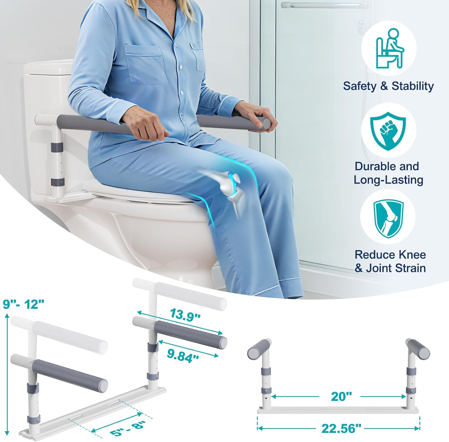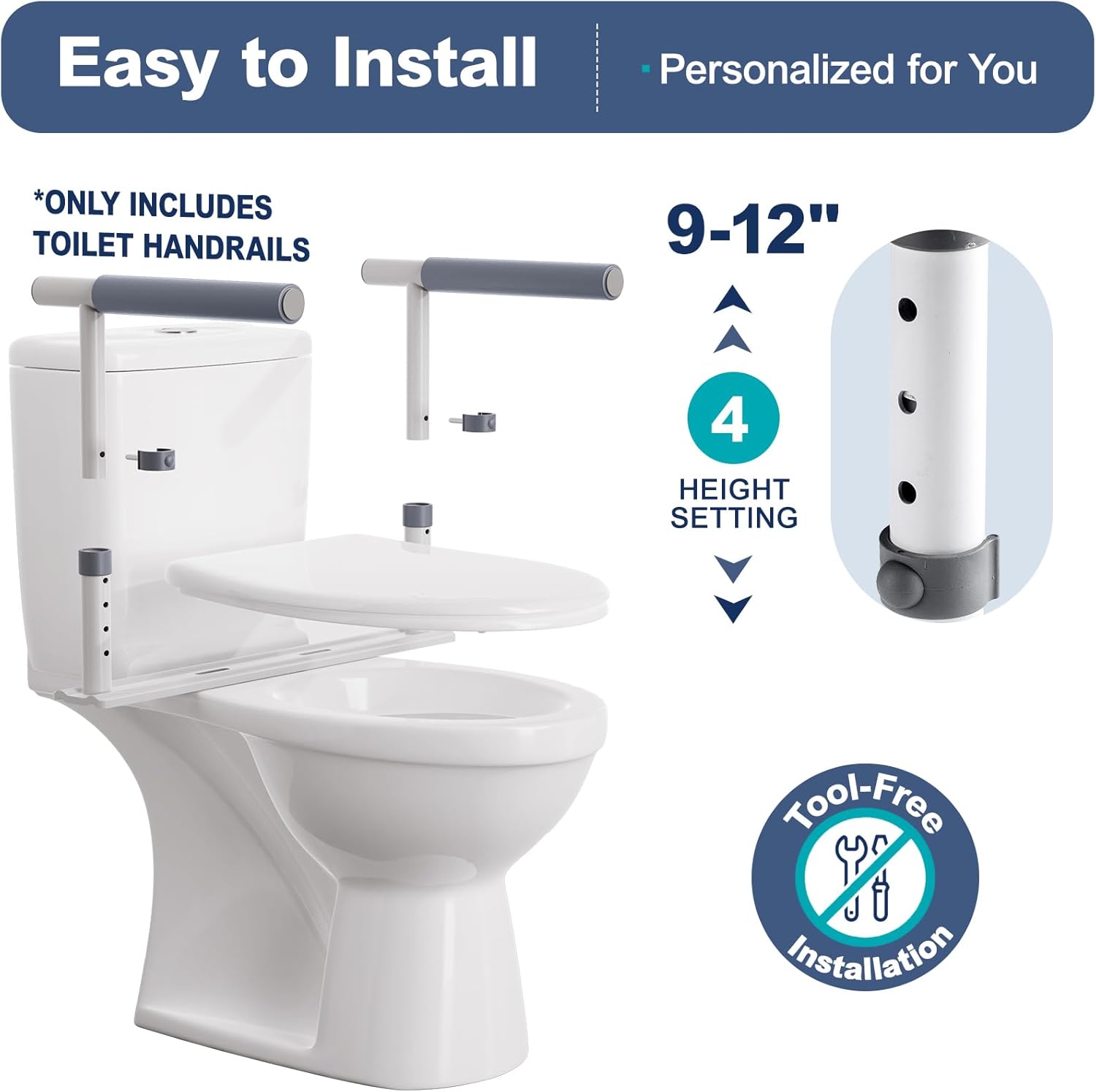 Toilet Safety Rails for Seniors, Height Adjustable Toilet Safety Frame Grab Bars, 500lb Toilet Support Rails Easy Installation & No Wobble, Toilet Assistance Handles for Elderly and Disabled